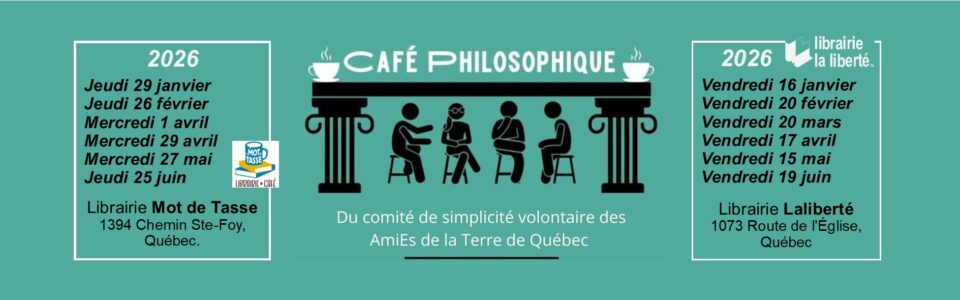 DATE : Jeudi 26 février 2026, de 19h à 20h45 LIEU: Librairie-Café Le Mot de Tasse’, 1394 Chemin Ste-Foy, Québec. Le café philo sera animé […]