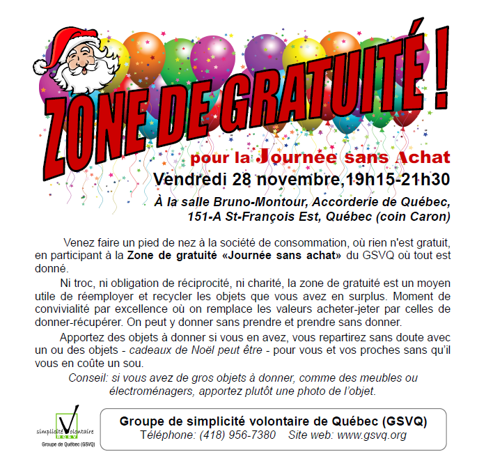 Activité Zone de gratuité pour la journée sans achat, 28 novembre 2014